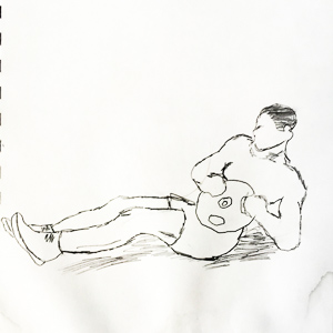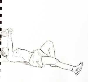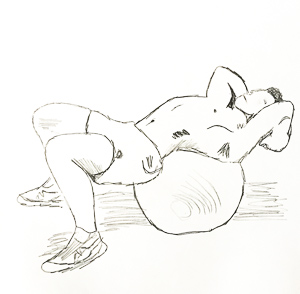 The best way to explain the specific exercises to you is to have you watch Scott Herman’s 16.5 minutes long Youtube video on abs, Scott is an impressive athlete (he has more videos on utube) and I am taking this video of his as a challenge to TRY these for 2 months, four days a week with no or low weights to start with. I think it is best to start these after warming your body up the first month with the workouts I previously mentioned, if you haven’t done ab workouts lately. I am inordinately excited to introduce you to my very gifted son, Elias. Elias loves anything athletic, artistic or construction oriented. He has an eager, helpful and driven personality. Elias drew each of the exercises, so you can easily print this instruction sheet and take it with you to the gym, as a reminder. He wants you to know that he had to rush because I was pushing him with a deadline, so these are not completed pictures. Remember, the dinosaur can be eaten if you eat 3 bites a day! I hope you find this helpful in your quest for strong abs!